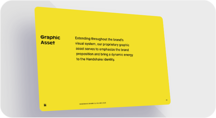HANDSHAKE BRAND GUIDELINES 2021 39 Extending throughout the brand’s visual system, our proprietary graphic asset serves to emphasize the brand proposition and bring a dynamic energy to the Handshake identity. Graphic Asset