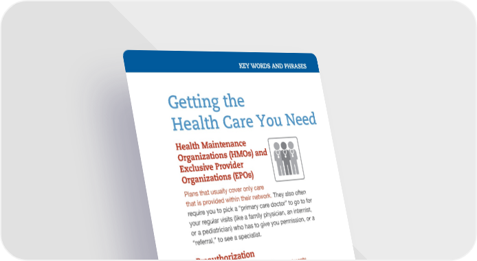 KEY WORDS AND PHRASES Getting the Getting the Health Care You NeedHealth Care You Need Health Maintenance Organizations (HMOs) and Exclusive Provider Organizations (EPOs) Plans that usually cover only care that is provided within their network. They also often require you to pick a “primary care doctor” to go to for your regular visits (like a family physician, an internist, or a pediatrician) who has to give you permission, or a “referral,” to see a specialist. Preauthorization A requirement that certain services, treatments, medications, and equipment be approved in advance by the insurance company, except in emergencies. While getting preauthorization doesn’t guarantee that the service will be covered, not getting it when you need to will likely cause you to pay more than you could have if you had gotten preauthorization. TIP: To get the most out of your insurance, know your plan’s rules. To save the most money, try to stay in its preferred provider network (if it has one) and get the proper referrals and preauthorizations if you need them.