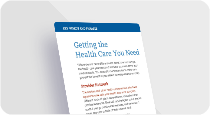 KEY WORDS AND PHRASES Getting the Health Care You Need Different plans have different rules about how you can get the health care you need and still have your plan cover your medical costs. You should know these rules to make sure you get the bene昀椀t of your plan’s coverage and save money. Provider Network The doctors and other health care providers who have agreed to work with your health insurance company. Different kinds of plans have different rules about their provider networks. Most will require higher out-of-pocket costs if you go outside their network, and some won’t cover any care outside of their network at all. There are two types of provider networks: „ Preferred Provider Organizations (PPOs) and Point of Service (POS) plans „ Health Maintenance Organizations (HMOs) and Exclusive Provider Organizations (EPOs) Preferred Provider Organizations (PPOs) and + Point of Service (POS) Plans Plans that usually cover some of the cost of services you get outside their preferred provider network. However, you will probably have to pay higher deductibles and/or copayments or co-insurance if you go outside the network.