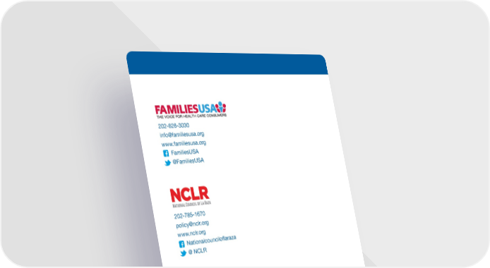 202-628-3030 info@familiesusa.org www.familiesusa.org FamiliesUSA @FamiliesUSA 202-785-1670 policy@nclr.org www.nclr.org Nationalcouncilo昀氀araza @ NCLR © 2016 Families USA Foundation 10012016