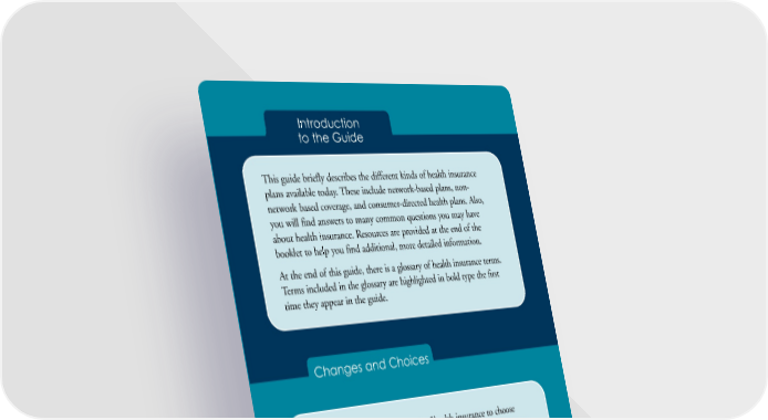 Introduction to the Guide This guide briefly describes the different kinds of health insurance plans available today. These include network-based plans, non- network based coverage, and consumer-directed health plans. Also, you will find answers to many common questions you may have about health insurance. Resources are provided at the end of the booklet to help you find additional, more detailed information. At the end of this guide, there is a glossary of health insurance terms. Terms included in the glossary are highlighted in bold type the first time they appear in the guide. Changes and Choices Today, there are many more kinds of health insurance to choose from than were available just a few years ago. Traditional differences between and among plans may no longer apply. Also, there is an increased emphasis on the role of consumers in managing their own health care and health care finances. There is a focus on providing information on the cost of care and health care quality—at the level of the physician, physician group, and hospital—to help consumers and employers choose among the many options available to them. A New Health Care Marketplace Things have changed a lot since the 1970s, when most people in the United States who had health insurance had indemnity insurance. Indemnity insurance is often called fee-for-service or traditional health insurance. This type of coverage generally assumes that the medical provider (usually a doctor or hospital) will be paid a fee for 1