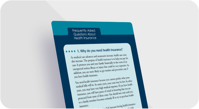 Frequently Asked Questions About Health Insurance 1. Why do you need health insurance? As medical care advances and treatments increase, health care costs also increase. The purpose of health insurance is to help you pay for care. It protects you and your family financially in the event of an unexpected serious illness or injury that could be very expensive. In addition, you are more likely to get routine and preventive care if you have health insurance. You need health insurance because you cannot predict what your medical bills will be. In some years, your costs may be low. In other years, you may have very high medical expenses. If you have health insurance, you will have peace of mind in knowing that you are protected from most of these costs. You should not wait until you or a family member becomes seriously ill to try to purchase health insurance. We also know that there is a link between having health insurance and getting better health care. Research shows that people with health insurance are more likely to have a regular doctor and to get care when they need it. 2. How do you get health insurance? Most people get health insurance through their employers or organizations to which they belong. This is called group insurance. Some people do not have access to group insurance. They may choose to purchase their own individual health insurance directly from an insurance company. Many Americans get health insurance through government programs that operate at the national, State, and local levels. Examples include Medicare, Medicaid, and programs run by the Department of Veterans Affairs and Department of Defense. 3