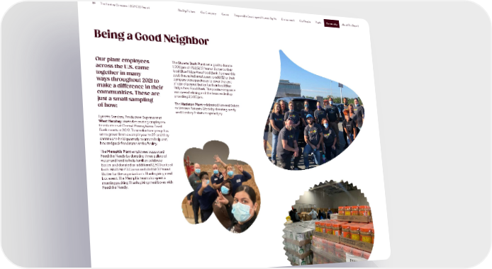 89 The Hershey Company | 2021 ESG Report The Big Picture Our Company Cocoa Responsible Sourcing and Human Rights Environment Our People Youth Community About This Report Community Being a Good Neighbor Our plant employees The Stuarts Draft Plant set a goal to donate across the U.S. came 1,000 jars of REESE’S Peanut Butter to their local Blue Ridge Area Food Bank. To meet this together in many goal, they asked employees to add $2 to their ways throughout 2021 to company store purchases to cover the cost of a jar of peanut butter for their local Blue make a difference in their Ridge Area Food Bank. The positive response communities. These are was overwhelming and the team ended up providing 2,500 jars. just a small sampling The Hazleton Plant celebrated National Salute of how: to Veteran Patients Week by donating candy and Hershey T-shirts to spread joy. Lynette Sanders, Production Supervisor at West Hershey, started recruiting employees to volunteer at Central Pennsylvania Food Bank events in 2019. Their volunteer group has since grown from six employees to 22 and they continue to hold quarterly events to help sort, box and pack food items at the facility. The Memphis Plant employees supported Feed the Needy by donating three pallets of water and food to help families celebrate Easter and donated an additional 2,500 units of both HERSHEY’S Cocoa and REESE’S Peanut Butter for the organization’s Thanksgiving meal box event. The Memphis team also spent a morning packing Thanksgiving meal boxes with Feed the Needy.