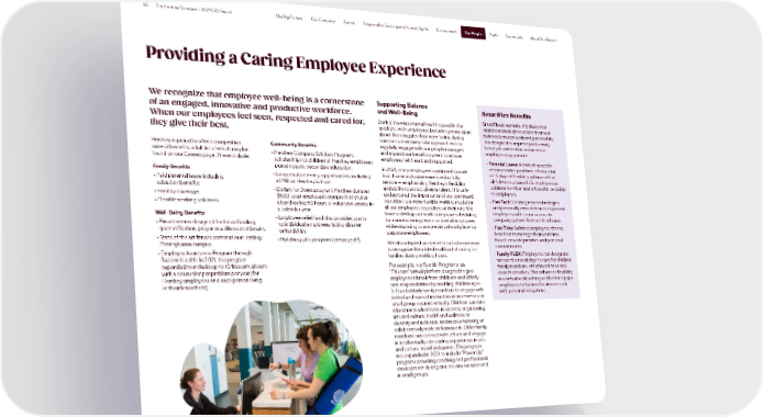 65 The Hershey Company | 2021 ESG Report The Big Picture Our Company Cocoa Responsible Sourcing and Human Rights Environment Our People Youth Community About This Report Our People Providing a Caring Employee Experience We recognize that employee well-being is a cornerstone Supporting Balance SmartFlex Benefits of an engaged, innovative and productive workforce. and Well-Being When our employees feel seen, respected and cared for, During the year, mental health stayed in the SmartFlex is our suite of policies that spotlight, with employees becoming more open enables individuals to create their own they give their best. about the struggles they were facing during balance between work and personal life. constant uncertainty. Our approach was to It is designed to improve productivity, Hershey is proud to offer a competitive Community Benefits regularly engage with our people managers boost job satisfaction and increase suite of benefits, a full list of which may be and expand our benefits system to ensure employee engagement. found on our Careers page. These include: • Hershey Company Scholars Program: employees felt heard and supported. • Parental Leave: A total of six weeks scholarships to children of Hershey employees of consecutive paid time off or a total Family Benefits pursuing post-secondary education. In 2021, many employees continued to work of 15 days of flexible paid time off for • Paid parental leave including • Unique volunteering opportunities, including from home and some were hired as fully all full-time salaried U.S. employees in adoption benefits. at Milton Hershey School. remote — emphasizing Hershey’s flexibility addition to other similar benefits available • Dollars for Doers program: Hershey donates and ability to attract diverse talent. This only to employees. • Fertility coverage. $500 to an employee’s nonprofit of choice underscored the importance of our continued • Flexible working solutions. after they log 50 hours of volunteer service in transition to a more flexible working model for • Flex Tech: Utilizing new technologies a calendar year. all our employees, regardless of their role. We and personally owned devices to provide Well-Being Benefits have scaled up our work to improve scheduling employees with secure access to • Private rooms designed for breastfeeding, • Employee relief fund that provides grants for manufacturing teams and retail employees company systems from work or home. quiet reflection, prayer or wellness rest breaks. to individual employees facing disaster while migrating to a more virtual workplace for • Flex Time: Salaried employees choose or hardships. corporate employees. how best to manage their work time • State of the art fitness center at our Hershey, • Matching gifts program (see page 87). We also adapted our benefits to find more ways based on work priorities and personal Pennsylvania campus. to recognize the added workload of caring for commitments. • Employee Assistance Program through families during working hours. • Family FLEX: Employees can designate Beacon Health: In 2021, the program time in their workdays to care for children, expanded to include up to 10 free virtual visits For example, our Bundle Program is an family members, other loved ones and with a counselor per problem per year (for “Educare” virtual platform designed to give even themselves. This enhances flexibility Hershey employees and each person living employees a break from childcare and elderly in a virtual work setting and better equips in their household). care responsibilities by enabling children ages employees to balance business needs 3–11 and elderly family members to engage with with personal obligations. vetted and trained instructors in one-on-one or small group sessions virtually. Children can take educational adventures in science, engineering, arts and culture, health and wellness or diversity and inclusion, and receive tutoring or collaboratively work on homework. Older family members can connect with others and engage in intellectually stimulating experiences in arts and culture, travel and games. This program was expanded in 2021 to include “Power Up” programs providing coaching and professional development during one-on-one sessions and in small groups.
