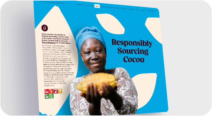 20 The Hershey Company | 2021 ESG Report Cocoa The Big Picture Our Company Cocoa Responsible Sourcing and Human Rights Environment Our People Youth Community About This Report Cocoa remains a key priority for Hershey. In sourcing cocoa for some of the world’s most iconic chocolate brands, Hershey seeks to promote Responsibly Shared Goodness for all stakeholders. Our Cocoa For Good strategy is designed to address systemic social and environmental challenges in cocoa Sourcing communities and help create a resilient future. Child labor, poor nutrition and deforestation are all symptoms of poverty. Through Cocoa For Good and our commitment to invest $500 million Cocoa in cocoa communities by 2030, Hershey seeks to contribute to disrupting the cycle of poverty in these communities. The portfolio of programs under our Cocoa For Good strategy works to improve cocoa farming as well as diversify incomes at the household level, educate families on the value of savings, empower communities, foster women’s leadership and improve the quality of nutrition and access to education.