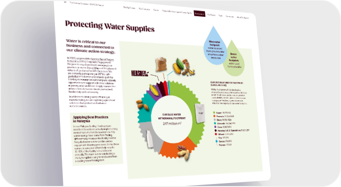 54 The Hershey Company | 2021 ESG Report Environment The Big Picture Our Company Cocoa Responsible Sourcing and Human Rights Environment Our People Youth Community About This Report Protecting Water Supplies Blue water footprint: Water is critical to our water sourced business and connected to from groundwater Green our climate action strategy. or surface water water resources footprint: In 2020, we joined the Science Based Targets water used Network’s (SBTN) Corporate Engagement from rainwater Program to stay aligned with emerging best practices in water stewardship and the planned release of guidance for SBTs for nature. We are currently participating in SBTN’s self- guided pilot to better understand a path for OUR 2021 BLUE WATER FOOTPRINT Hershey to minimize its water impacts, identify (CUBIC METERS) opportunities to support collective solutions in priority areas and more deeply examine the While the framework for developing intersections between climate, water, land, science-based targets for nature as defined biodiversity and community. in SBTN will focus on blue water (which is In addition to driving water efficiency in controllable), we also plan to identify ways manufacturing, we are exploring agricultural to improve Hershey’s green water use, solutions that protect and enhance which is the majority of our water footprint. water resources. OUR BLUE WATER Sugar: 95,173,912 Applying Best Practices WITHDRAWAL FOOTPRINT Peanuts: 51,069,828 in Malaysia Dairy: 39,561,526 In our Malaysia facility, Hershey team 247 million m3 Almonds: 36,042,993 members have been actively implementing Corn: 15,837,873 more measures to reduce water use. Key Hershey’s U.S. Operations: 5,829,259 water savings have come from finding Wheat: 3,383,202 different ways to reuse the facility’s water. Recycled water is now used in various Soy: 337,870 equipment cleaning processes. So far, these Cocoa: 254,310 water conservation efforts help recycle Pecans: 117,831 10–15% of the facility’s treated water annually. The team is now conducting a study to explore using treated water from a cooling tower for irrigation. +2+3+6+14+16+20+38+D 1