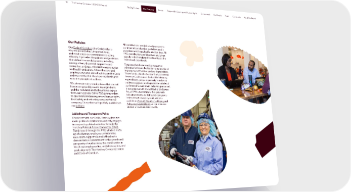 12 The Hershey Company | 2021 ESG Report The Big Picture Our Company Cocoa Responsible Sourcing and Human Rights Environment Our People Youth Community About This Report Our Company Our Policies All contributions are disbursed pursuant to Our Code of Conduct (the Code) reflects our internal contribution guidelines and in who we are and what’s important to us, accordance with applicable election laws. All and emphasizes our commitment to acting PAC contributions are bipartisan and given ethically. It provides the policies and guidelines equally to both major political parties at the that define how we do business, including, federal and state levels. among others, those with respect to anti- Corporate funds are used to support or corruption, antitrust, whistleblower protection advocate for issues, legislation or referenda of and health and safety. All our directors and importance to Hershey and our shareholders. employees receive annual training on the Code These funds, classified under the U.S. Internal and must verify that they have read and agree Revenue Code as non-deductible lobbying with the principles it outlines. expenditures, are paid primarily to industry We also maintain several policies that control trade associations and support the salaries of how we responsibly source key ingredients our internal Government Relations personnel. and the standards and behaviors we expect In accordance with the Lobbying Disclosure from our suppliers. Other ESG policies relate Act of 1995, our company files quarterly to environmental management, human rights, lobbying reports, outlining the company’s food safety and other key concerns for our federal-level advocacy work. We also company. Our policies are publicly available on publish an Annual Report of Lobbying and our website. Advocacy Expenditures on the Investors section of our website annually. Lobbying and Transparent Policy Consistent with our Code, Hershey does not make political contributions and only engages in corporate political activities through the Hershey Political Action Committee (PAC). Funds raised through the PAC, which is made up of voluntary employee contributions, are used to support elected officials who demonstrate a commitment to the growth and prosperity of our business, the communities in which our employees live, and whose values and goals align with The Hershey Company’s vision and Code of Conduct.
