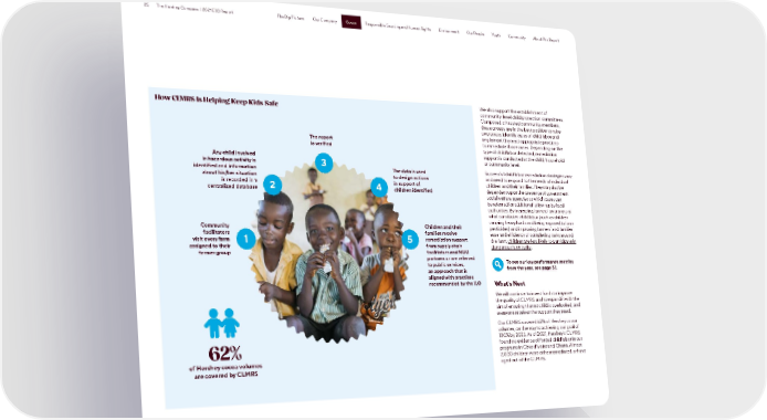 25 The Hershey Company | 2021 ESG Report Cocoa The Big Picture Our Company Cocoa Responsible Sourcing and Human Rights Environment Our People Youth Community About This Report We also support the establishment of How CLMRS Is Helping Keep Kids Safe community-level child protection committees. Composed of trusted community members, these groups are in the best position to raise awareness, identify cases of child labor and The report implement the most appropriate practices is verified to remediate those cases. Depending on the type of child labor detected, remediation Any child involved support is conducted at the child, household in hazardous activity is 3 or community level. identified and information The data is used Successful child labor remediation strategies vary about his/her situation to design actions and need to respond to the needs of individual is recorded in a 2 4 in support of children and their families. They may also be centralized database children identified dependent upon the presence of government social welfare agencies to which cases can be referred for additional follow-up by local authorities. By increasing farmers’ awareness of what constitutes child labor (such as children carrying heavy loads and being exposed to farm Community Children and their pesticides) and improving farmers’ and families’ facilitators families receive ease and efficiency of completing tasks around visit every farm 1 5 remediation support the farm, children are less likely to participate in assigned to their from supply chain dangerous farm tasks. farmer group facilitators and NGO partners or are referred To see our key performance metrics to public services, from the year, see page 31. an approach that is aligned with practices recommended by the ILO What’s Next We will continue to invest funds to improve the quality of CLMRS and to expand it with the aim of ensuring that no child is overlooked, and everyone receives the support they need. Our CLMRS covered 62% of Hershey cocoa volumes, on the way to achieving our goal of 100% by 2025. As of 2021, Hershey’s CLMRS 62% found no evidence of forced child labor in our programs in Côte d’Ivoire and Ghana. Almost of Hershey cocoa volumes 2,000 children were either remediated or have are covered by CLMRS aged out of the CLMRS.