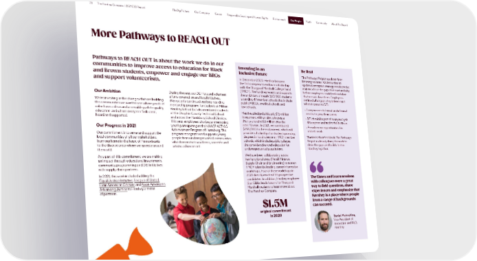 73 The Hershey Company | 2021 ESG Report The Big Picture Our Company Cocoa Responsible Sourcing and Human Rights Environment Our People Youth Community About This Report Our People More Pathways to REACH OUT Pathways to REACH OUT is about the work we do in our Investing in an Be Real communities to improve access to education for Black Inclusive Future The Pathways Project was born from and Brown students, empower and engage our BRGs In December 2020, Hershey became listening sessions. We knew that an and support volunteerism. the first company to endow a scholarship updated enterprise strategy needed to be with the Thurgood Marshall College Fund realistic about the gaps that exist and why, (TMCF). The fund represents and supports before employees could feel confident Our Ambition During the year, our DEI-focused volunteer the ambitions of nearly 300,000 students that we can close them. Employees efforts covered several local initiatives. attending 47 member schools that include outlined what gaps they believe exist We’re investing in the changes that are building We not only continued our long-standing public HBCUs, medical schools and when it comes to DEI: the communities we want to see: where youth of mentorship programs for students at Milton law schools. • Everyone needs formal and informal color have a clear and accessible path to quality Hershey School but also mentored students Hershey pledged a historic $1.5 million routes to grow their career. education and where everyone feels seen, at the Dauphin County Technical School investment with an aim to increase • DEI should be part of everyone’s job heard and supported. and across the Harrisburg School Districts. that to a total of $3 million over the description and tied to the business. This year, employees also began mentoring next 10 years. In 2021, we contributed Our Progress in 2021 youth participating in the NAACP ACT-SO $200,000 to the endowment, which will • Provide more opportunities for Achievement Program of Harrisburg. The provide scholarships for students pursuing remote work. Our commitment is to serve and support the program recognizes and supports young degrees in food science at TMCF member Thanks to their feedback, The Pathways local communities of all our stakeholders, people from underrepresented communities schools, which include public colleges Project is already doing the work to from our home in the heart of Pennsylvania who demonstrate academic, scientific and that provide advanced education for close the gaps and build a better to the diverse areas where we operate around artistic achievement. underrepresented populations. Hershey together. the world. As a part of this commitment, we are making We have been collaborating across an impact through educational investments, key functional areas (Retail, Finance, community programming and DEI initiatives Supply Chain and Engineering) to attract with supply chain partners. TMCF talent by leading career information workshops. Four of these workshops in In 2021, this work included adding the 2021 directly reached 135 prospective Equal Justice Initiative, League of United candidates. In addition, Hershey employee The Listen and Learn sessions Latin American Citizens and Asian Americans Star Gibbs leads forums for Thurgood with colleagues were a great Advancing Justice to Hershey’s roster Marshall students to learn more about way to field questions, share of partners. The Hershey Company. experiences and emphasize that Hershey is a place where people $1.5M from a range of backgrounds can succeed. original commitment in 2020 Daniel Mohnshine, Vice President of Innovation and R&D, Hershey