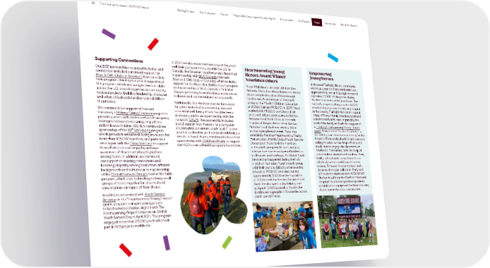 82 The Hershey Company | 2021 ESG Report The Big Picture Our Company Cocoa Responsible Sourcing and Human Rights Environment Our People Youth Community About This Report Youth Supporting Connections In 2021, we also expanded our support for youth Our 2021 partnerships to spread inclusion and well-being programming outside the U.S. In Heartwarming Young Empowering connection included continued support for Canada, the Sweeter Together project launched Heroes Award Winner Young Heroes Boys & Girls Clubs of America’s Keystone Club in partnership with BGC Canada (formerly Nourishes Others In the rural Fairfield, Illinois, community teen program. Hershey is a proud supporter of Boys and Girls Club of Canada), which includes where six-year-old Perry Kimberlin lives, this program, which encourages teens at clubs support for the Buy a Bar, Build a Court program Yusuf Mehdawi, a six-year-old from San approximately one in 10 people received across the U.S. to work together on community- and sponsorship of BGC Canada’s Pink Shirt Antonio, Texas, has always been concerned a positive COVID-19 diagnosis during focused projects, building leadership, character Day programming to end bullying and increase about people who do not have enough the first 12 months of the pandemic. This and other critical social and emotional skills in inclusion and connectedness among youth. food to eat. As a member of the youth caused a major challenge as the 16,000 the process. Additionally, the Hershey team in the United group at the Muslim Children Education residents have access to only one hospital Kingdom kicked off a partnership focused and Civic Center (MCECC), in 2019, Yusuf in the county, Fairfield Memorial Hospital. We continued our support of Harvard on mental well-being efforts for older teens worked with MCECC to make and sell Many of Perry’s family members work and University’s Making Caring Common project to and young adults via a partnership with the crafts with all proceeds going to the San volunteer in health care. Inspired by the provide parents with evidence-based caregiving nonprofit CALM. The partnership included Antonio Food Bank. Then, in the early work of his family and with the support of strategies to raise more caring, empathetic brand support from Reese’s for a campaign months of the pandemic when the San a Hershey Heartwarming Young Heroes and inclusive children. We also continued our encouraging consumers to ask “u ok?” to one Antonio Food Bank was serving twice grant, Perry hosted “Be the CHANGE,” a sponsorship of the WE Well-being program, another to check in on the mental well-being of as many people each week, Yusuf was week-long coin drive to raise money for the which provided critical well-being resources for friends. In South Korea, Hershey also launched awarded a Hershey Heartwarming Young hospital. Perry worked with local businesses more than 105,000 teachers, and partnered a partnership with ChildFund Korea to support Heroes grant. For his Global Youth Service willing to serve as coin drop-off sites and once again with the Crisis Text Line to support the NGO’s mental health programs for children. Day project, Yusuf and the members made sure to engage his classmates at their efforts to boost empathy and raise of his youth group made crafts ranging Northside Elementary. With the help of awareness of their mental health platform from picture frames and pencil holders to school administration and teachers, Perry among teens. In addition, we continued birdhouses and tote bags. As Global Youth held a school-wide competition to see our support in creating connections and Service Day happened during the holy which classroom could raise the most boosting empathy among teens from different month of Ramadan, Yusuf’s youth group money. Between these initiatives and a backgrounds and cultures via our sponsorship sold their crafts as Eid gifts after evening door-to-door coin collection, Perry and of the Global Nomads Group’s Seat at the Table prayers at MCECC’s mosque, raising 312 student volunteers raised $3,262.48! program, which uses technology to bring small approximately $1,000 or the equivalent The funds will help the Fairfield Memorial groups of teens together for cross-cultural of 7,000 meals for the San Antonio Food Hospital Foundation purchase pediatric conversations on topics of their choice. Bank. He also spent a day helping sort rehabilitation equipment for their new wing and pack 13,000 pounds of food to be that is currently under construction. In addition, we worked with Youth Service distributed to people in 16 counties across America on the “Heartwarming Young Heroes” south-central Texas. grants program to inspire young people to lead service activities aligned with The Heartwarming Project’s mission on Global Youth Service Day in April 2021. This program engaged more than 27,000 youth who took part in 528 projects worldwide.
