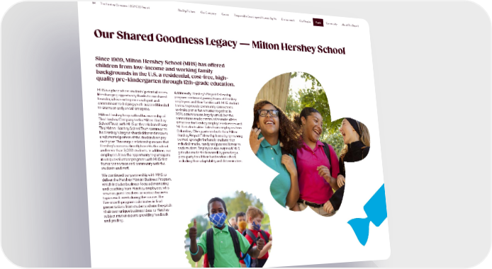 84 The Hershey Company | 2021 ESG Report The Big Picture Our Company Cocoa Responsible Sourcing and Human Rights Environment Our People Youth Community About This Report Youth Our Shared Goodness Legacy — Milton Hershey School Since 1909, Milton Hershey School (MHS) has offered children from low-income and working family backgrounds in the U.S. a residential, cost-free, high- quality pre-kindergarten through 12th-grade education. MHS is a place where students’ potential meets Additionally, Hershey’s Project Fellowship life-changing opportunity thanks to our shared program continued, pairing teams of Hershey founder, whose entrepreneurial spirit and employees and their families with MHS student commitment to helping youth succeed blended homes to provide community connections to create an early social enterprise. and take part in fun activities together. In Milton Hershey bequeathed his ownership of 2021, activities were largely virtual, but the The Hershey Company to the Milton Hershey connections made continued to make all the School Trust, with MHS as the sole beneficiary. difference for Hershey employee volunteers and The Milton Hershey School Trust continues to MHS students alike. Sales team employees from be Hershey’s largest shareholder and receives Columbus, Ohio, partnered with their Milton a substantial portion of the dividends we pay Hershey Project Fellowship home by sponsoring each year. This unique relationship means that a virtual spa night for female students that Hershey’s success directly benefits the school included snacks, candy and personal letters to and more than 2,000 students. In addition, our each student. Employees also surprised MHS employees have the opportunity to participate girls who made the honor roll by providing a in unique volunteer programs with MHS that pizza party for all their hard work in school, foster connection and community with the including their adaptability and determination. students and staff. We continued our partnership with MHS to deliver the Hershey Honors Business Program, which includes business-focused mentoring and coaching from Hershey employees, who serve as guest teachers on various business topics each week during the course. The five-month program culminates in final presentations from students where they pitch their own unique business ideas to Hershey subject matter experts providing feedback and grading.