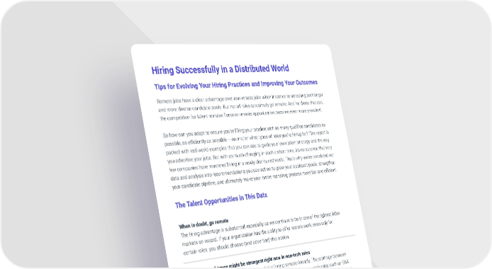 Hiring Successfully in a Distributed World Tips for Evolving Your Hiring Practices and Improving Your Outcomes Remote jobs have a clear advantage over non-remote jobs when it comes to attracting both larger and more diverse candidate pools. But not all roles can simply go remote. And for those that can, the competition for talent remains fierce as remote opportunities become even more prevalent. So how can you adapt to ensure you’re filling your pipeline with as many qualified candidates as possible, as efficiently as possible – no matter what types of roles you’re hiring for? This report is packed with real-world examples that you can use to guide your own talent strategy and the way you advertise your jobs. But with so much changing in such a short time, it’s no surprise that very few companies have mastered hiring in a newly distributed world. That’s why we’ve translated our data and analysis into recommendations you can act on to grow your applicant pools, strengthen your candidate pipeline, and ultimately make your entire recruiting process more fair and efficient. The Talent Opportunities in This Data When in doubt, go remote The hiring advantage is substantial, especially as we continue to be in one of the tightest labor markets on record. If your organization has the ability to offer remote work, even only for certain roles, you should choose (and advertise) this option. The remote arbitrage might be strongest right now in non-tech roles Tech jobs have always had a higher potential of being remote-friendly. The arbitrage between remote and non-remote with candidates is specifically massive in non-tech roles such as G&A (finance, legal, HR, recruiting). These are areas where you can disproportionately save time and money hiring in this market by allowing these roles to be remote. In a remote world, the inbound pipeline is increasingly valuable As labor markets have gotten very tight, companies are looking to their inbound talent pipelines to help ease the pressure off sourcing, executive searches, and referrals. If you are hiring for remote jobs today, chances are you are seeing a more robust inbound candidate pool. Incorporating that into your hiring strategy can yield substantial time and cost savings. © Tapwage Inc 2022 25