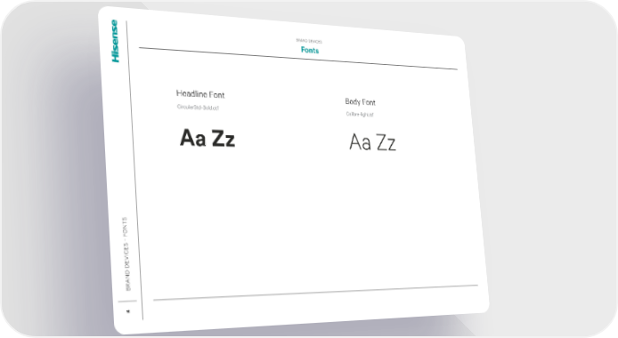 Hisense Brand Book Page 11 Page 13BRAND DEVICES Fonts BRAND DEVICES - FONTS 12 Aa Zz Aa Zz Headline Font CircularStd-Bold.otf Body Font Calibre-light.ttf