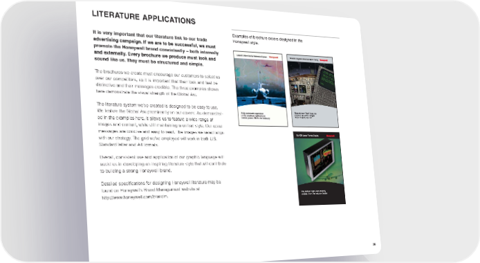 LITERATURE APPLICATIONS Examples of brochure covers designed in the It is very important that our literature link to our trade Honeywell style. advertising campaign. If we are to be successful, we must promote the Honeywell brand consistently – both internally Versatile Integrated Avionics (VIA) for Boeing and externally. Every brochure we produce must look and sound like us.They must be structured and simple. The brochures we create must encourage our customers to select us over our competitors, so it is important that their look and feel be distinctive and their messages credible. The three examples shown here demonstrate the visual strength of the Global Arc. The literature system we’ve created is designed to be easy to use. Expand your flight function We feature the Global Arc prominently on our covers. As demonstrat- capabilities with a single high-integrity system ed in the examples here, it allows us to feature a wide range of images and content, while still maintaining a unified style. Our cover messages are concise and easy to read. The images we select align DU-1500 Large Format Display with our strategy. The grid we’ve employed will work in both U.S. Standard letter and A4 formats. Overall, consistent use and application of our graphic language will assist us in developing an inspiring literature style that will contribute to building a strong Honeywell brand. Detailed specifications for designing Honeywell literature may be found on Honeywell’s Brand Management website at http://www.honeywell.com/brandm. The newest flight deck display product from the industry leader 30