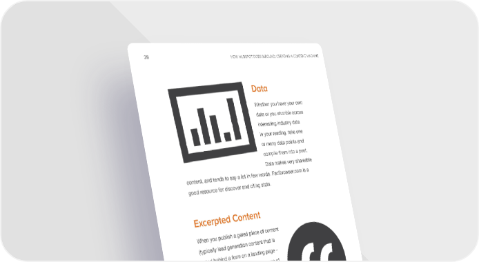 28 HOW HUBSPOT DOES INBOUND: CREATING A CONTENT MACHINE Data Whether you have your own data or you stumble across interesting industry data in your reading, take one or many data points and compile them into a post. data makes very shareable content, and tends to say a lot in few words. Factbrowser.com is a good resource for discover and citing stats. Excerpted Content When you publish a gated piece of content (typically lead generation content that is gated behind a form on a landing page – such as a whitepaper), a quick source of content is an excerpt of that piece. The excerpt also serves to promote the gated content, showing readers what they’ll get if they download the full version. It’s the same as when an author shares a free chapter of their published book. www.Hubspot.com