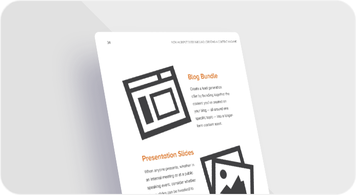 34 HOW HUBSPOT DOES INBOUND: CREATING A CONTENT MACHINE Blog Bundle Create a lead generation offer by bundling together the content you’ve created on your blog -- all around one specific topic -- into a longer- form content asset. presentation Slides When anyone presents, whether in an internal meeting or at a public speaking event, consider whether those slides can be tweaked to be a SlideShare presentation, standalone social media images, or featured on your blog. www.Hubspot.com