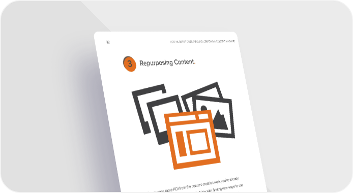 32 HOW HUBSPOT DOES INBOUND: CREATING A CONTENT MACHINE 3 Repurposing Content. To squeeze more rOI from the content creation work you’re already doing, it’s important you get comfortable with finding new ways to use the content you’ve already created. This is your content repurpose toolkit -- even if you get time-crunched and content creation seems impossible, these repurposing tactics should keep your machine from dying out: www.Hubspot.com