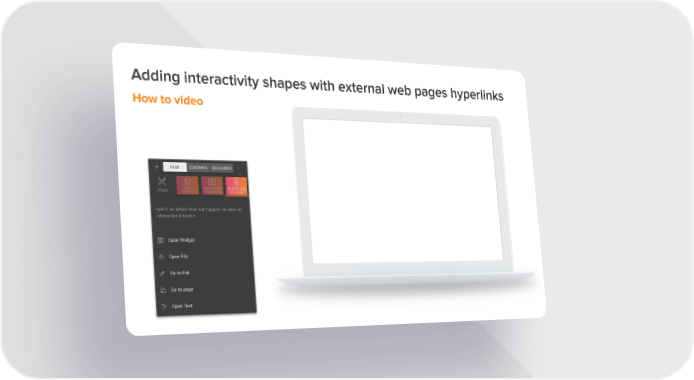 Adding interactivity shapes with external web pages hyperlinks How to video How to add interactivity Page 5 Page 7Video Player is loading.Play VideoPlaySkip BackwardSkip ForwardMuteCurrent Time 0:00/Duration -:-Loaded: 0%0:00Stream Type LIVESeek to live, currently behind liveLIVERemaining Time --:- 1xPlayback RateChaptersChaptersDescriptionsdescriptions off, selectedCaptionscaptions settings, opens captions settings dialogcaptions off, selectedAudio TrackPicture-in-PictureFullscreenThis is a modal window.The media could not be loaded, either because the server or network failed or because the format is not supported.Beginning of dialog window. Escape will cancel and close the window.TextColorWhiteBlackRedGreenBlueYellowMagentaCyanOpacityOpaqueSemi-TransparentText BackgroundColorBlackWhiteRedGreenBlueYellowMagentaCyanOpacityOpaqueSemi-TransparentTransparentCaption Area BackgroundColorBlackWhiteRedGreenBlueYellowMagentaCyanOpacityTransparentSemi-TransparentOpaqueFont Size50%75%100%125%150%175%200%300%400%Text Edge StyleNoneRaisedDepressedUniformDrop shadowFont FamilyProportional Sans-SerifMonospace Sans-SerifProportional SerifMonospace SerifCasualScriptSmall CapsResetDoneClose Modal DialogEnd of dialog window.