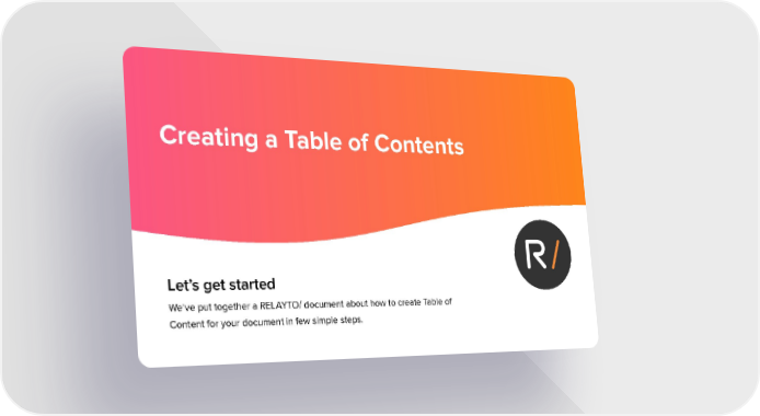 Creating a Table of Contents Let’s get started We've put together a RELAYTO/ document about how to create Table of Content for your document in few simple steps.