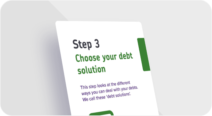Step 3 Choose your debt solution This step looks at the different ways you can deal with your debts. We call these ‘debt solutions’. 3 Page 43