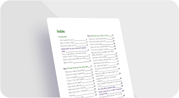 Index Introduction Step 3 Choose your debt solution 43 Is this guide for you? 2 What you need to start Step 3 44 Why use this guide? 3 Why is this step important? 44 Three things to do first 4 How to use this step 45 Hold action on your account sample Deal with your priority debts first 48 letter 6 Summary budget for creditors 49 Extra support if you are dealing with Ways to pay your creditors and make mental health issues 7 offers of payment 51 Other help to deal with your debts 7 Common priority debts 53 Myth busters 8 How to choose a debt solution 70 Debt solutions at a glance 71 Step 1 Know what you’ve really got 11 Can I get credit again? 83 What you need to start Step 1 12 How long will it take to pay my debts Why is this step important? 13 back? 83 Your full budget 14 What to do after you have chosen your Filling in 'Your full budget' 16 debt solution 84 Sole or joint budget? 16 Negotiating with your non-priority Use monthly figures 17 creditors 85 Working out your income 18 Work out offers of payment to non-priority Working out your outgoings 20 debts 86 Savings 22 Pro-rata offers sample letter 88 Know what you owe 23 Token payment or no offer of payment sample letter 89 Sort your debts into priority and No money left to pay your non-priority non-priority debts 24 creditors? 90 Once you have filled in What if your non-priority creditor refuses 'Your full budget' 26 your offer? 90 Can my non-priority creditors add interest Step 2 Maximise your money 29 and charges? 91 What you need to start Step 2 30 Getting a copy of your credit agreement Why is this step important? 30 or account statement 91 Don't miss out 31 What can my non-priority creditors do if I Practical tips to pay less for your don’t pay the debt? 92 everyday living costs 32 If you already have a county court Benefits and tax credits 37 judgment (CCJ) 93 Help from charitable grants 39 Debts with your bank: overdrafts, loans Unhappy with a benefit or tax credit and credit cards 94 decision? 41 Non-priority debts with extra rules 95 Are you having problems with your creditors? 98