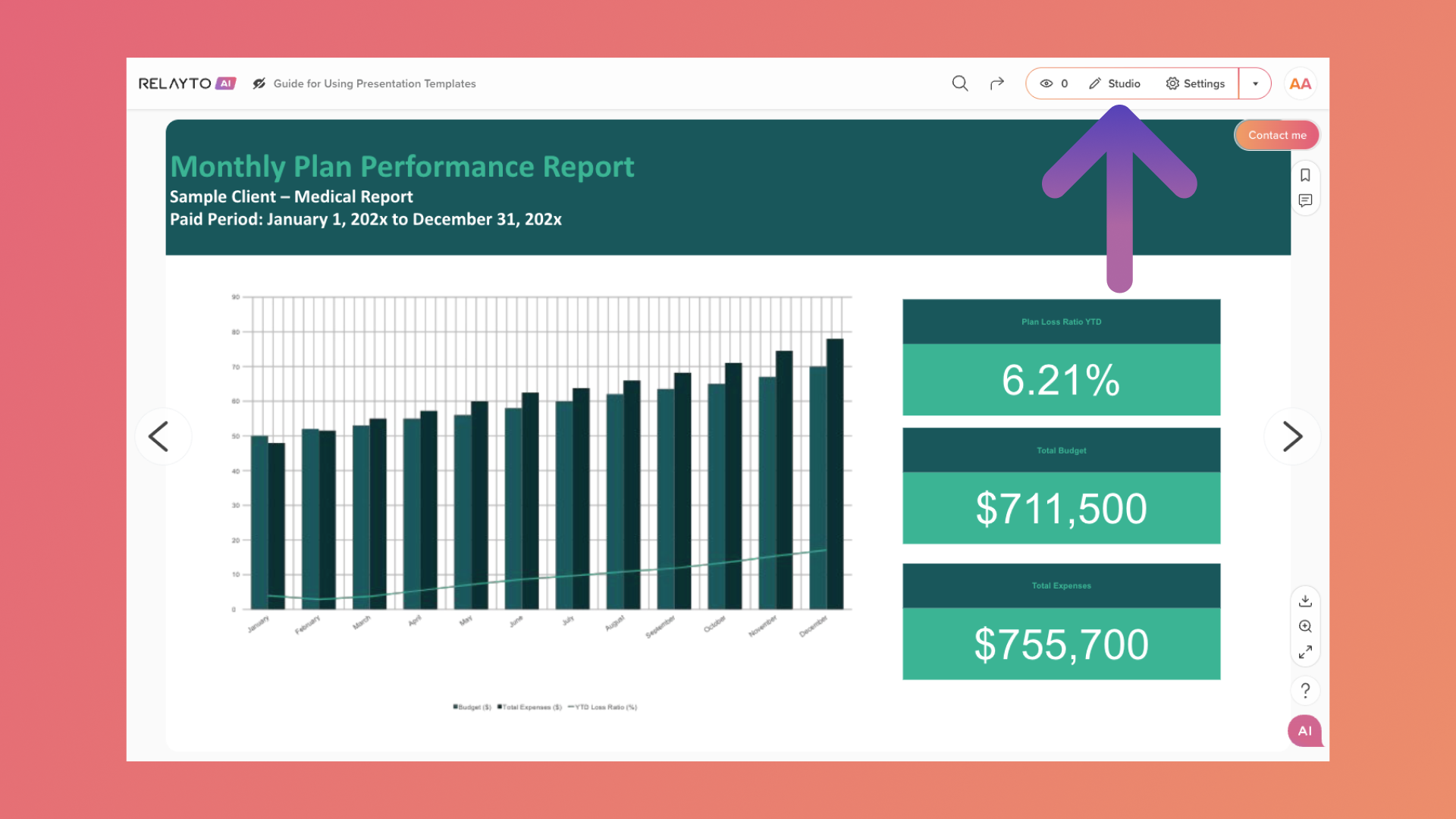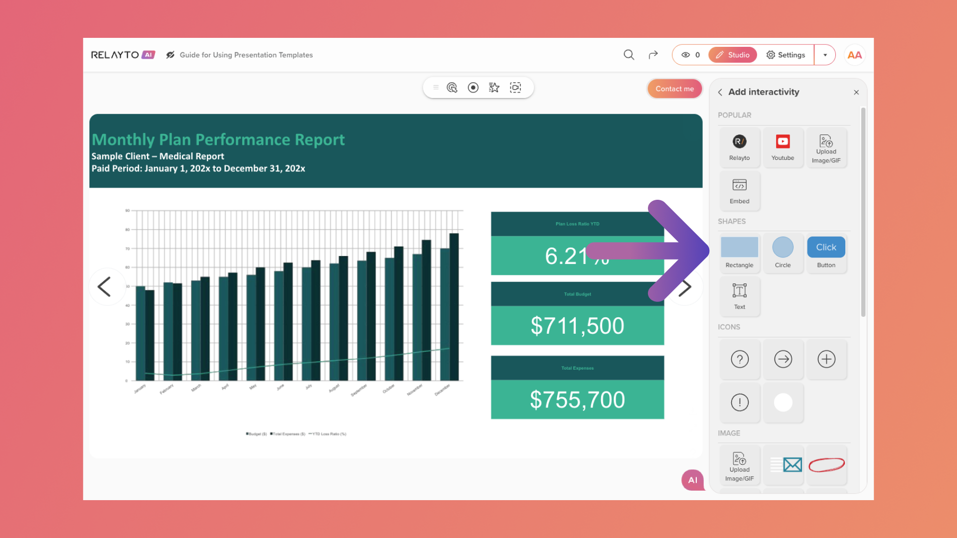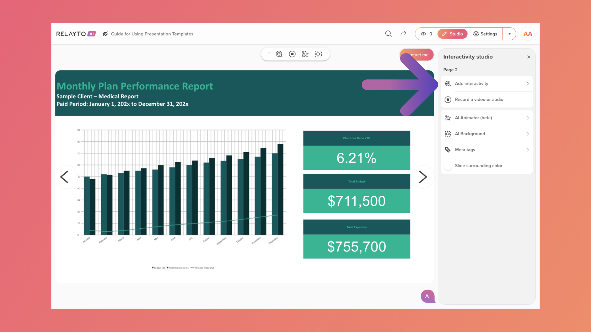 If your visuals—like charts or graphs—appear too small within your RELAYTO experience, you can easily resize or make them interactive for better visibility. Follow these steps: