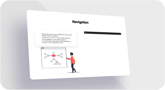 Navigation • Page numbers are unneeded as RELAYTO/ offers superior web-like document navigation • Avoid headers / footers to create a web-like experience • Add internal links to connect different parts of the document and make sure they look actionable and are easy to touch on hand-held devices