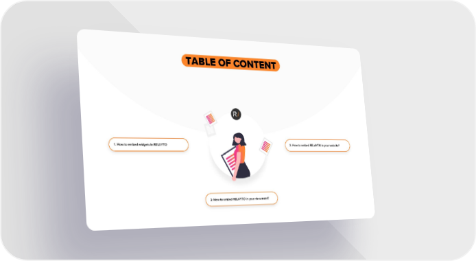 TABLE OF CONTENT 1. How to embed widgets in RELAYTO 3. How to embed RELAYTO in your website? 2. How to embed RELAYTO in your document?