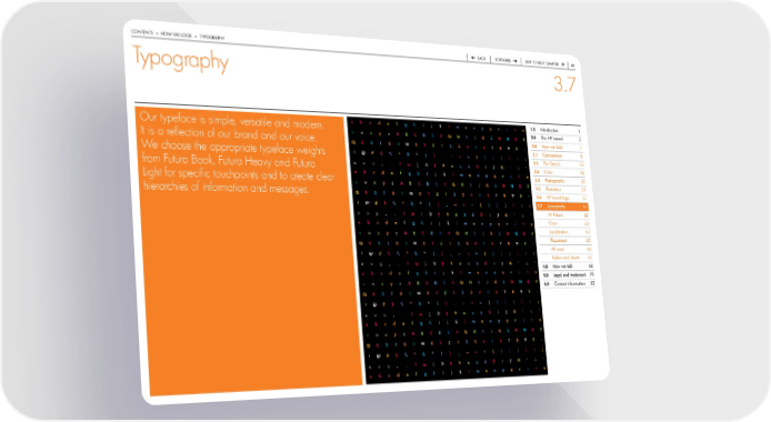 contentS > how we Look > typoGraphy back forward Skip to next chapter 6 Typography 3.7 .0 introduction 1 Our typeface is simple, versatile and modern. a b c d e f g h i j k l m n o p q r s t u v w x y z a b C D E F G H I j K L M N O P .0 the hp brand 3 3.0 It is a reflection of our brand and our voice. q r S T u v W X Y z 3 4 5 6 7 0 ~ how we look 7 3. composition 8 We choose the appropriate typeface weights ! @ # $ % ^ & * ( ) _ — + = { } [ } \ : ; 3. the Stretch 14 < > ≤ , . ? œ ∑ ® † ¥ ø π å ß ∂ ƒ © ˙ ∆ ˚ 3.3 color 28 from Futura Book, Futura Heavy and Futura a b c d e f g h i j k l m n o p q r s t u 3.4 photography 33 Light for specific touchpoints and to create clear v w x y z a b C D E F G H I j K L M N O P 3.5 illustration 51 hierarchies of information and messages. q r S T u v W X Y z 3 4 5 6 7 0 ~ 3.6 hp invent logo 57 ! @ # $ % ^ & * ( ) _ — + = { } [ } \ : ; 3.7 typography 61 < > ≤ , . ? œ ∑ ® † ¥ ø π å ß ∂ ƒ © ˙ ∆ ˚ hp futura 62 a b c d e f g h i j k l m n o p q r s t u color 63 v w x y z a b C D E F G H I j K L M N O P Localization 64 q r S T u v W X Y z 3 4 5 6 7 0 ~ placement 65 all caps 66 ! @ # $ % ^ & * ( ) _ — + = { } [ } \ : ; tables and charts 67 < > ≤ , . ? œ ∑ ® † ¥ ø π å ß ∂ ƒ © ˙ ∆ ˚ 4.0 how we talk 68 a b c d e f g h i j k l m n o p q r s t u 5.0 Legal and trademark 79 v w x y z a b C D E F G H I j K L M N O P 6.0 contact information 82 q r S T u v W X Y z 3 4 5 6 7 0 ~ ! @ # $ % ^ & * ( ) _ — + = { } [ } \ : ; < > ≤ , . ? œ ∑ ® † ¥ ø π å ß ∂ ƒ © ˙ ∆ ˚ a b c d e f g h i j k l m n o p q r s t u v w x y z a b C D E F G H I j K L M N O P q r S T u v W X Y z 3 4 5 6 7 0 ~ ! @ # $ % ^ & * ( ) _ — + = { } [ } \ : ; < > ≤ , . ? œ ∑ ® † ¥ ø π å ß ∂ ƒ © ˙ ∆ ˚ a b c d e f g h i j k l m n o p q r s t u