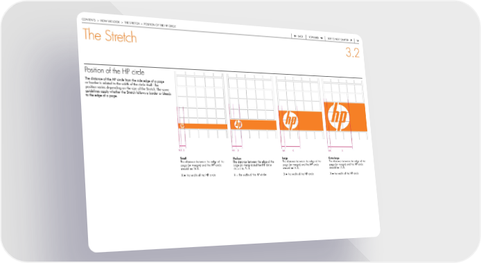 contentS > how we Look > the Stretch > poSition of the hp circLe back forward Skip to next chapter The Stretch 3.2 Position of the HP circle the distance of the hp circle from the side edge of a page or border is related to the width of the circle itself. the position varies depending on the size of the Stretch. the same guidelines apply whether the Stretch follows a border or bleeds to the edge of a page. ½x x ½x x ¼x x 1 / x x 8 Small Medium Large Extra-large the distance between the edge of the the distance between the edge of the the distance between the edge of the the distance between the edge of the page (or margin) and the hp circle page (or margin) and the hp circle page (or margin) and the hp circle page (or margin) and the hp circle 1 should be ½ x. should be ¼ x. should be / x. should be ½ x. 8 x = the width of the hp circle x = the width of the hp circle x = the width of the hp circle x = the width of the hp circle