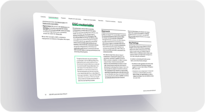 Contents Sustainable Impact Footprint Integrity and human rights Supply chain responsibility Operations Products and solutions Appendix chain best practices. See Human rights and ESG materiality Supply chain responsibility. • Digital divide: We partner with UN Women and We periodically conduct ESG materiality Based on these inputs, we evaluated and ranked Girl Rising to advance education for women assessments to review relevant ESG topics, Approach topics, then validated the results in a workshop and girls, and we work with MIT Solve and NABU reconfirm our long-standing areas of focus, and with HP executives and experts. Our new 2021 to advance digital literacy in communities clarify and shape our Sustainable Impact In 2021, we engaged the sustainability consultancy ESG materiality matrix summarizes the outcome around the world. See Education. strategy, investments, and disclosures. This Environmental Resources Management (ERM) of this process. process enables us to focus our efforts on the to conduct an ESG materiality assessment. Many other examples of HP’s stakeholder areas where we can have the greatest impact, Through interviews, surveys, and other sources, engagement are included throughout this report. determine gaps in our approach, and identify we collected internal and external input on a Key findings trends and leadership opportunities for our wide range of topics to determine their relative business. ESG materiality assessment informs importance to HP and to external stakeholders, By integrating a broad range of inputs and fresh our goals-setting process, and we have set and to understand the degree of impact we insights, our new ESG materiality assessment 1 aggressive goals related to several of our most can have on each topic area. Prior to this, our reflects the rapidly evolving landscape of ESG ESG-material topics to manage performance and most recent ESG materiality assessment was topics. In some cases, we combined topics or drive long-term progress. conducted in 2019. refined names or definitions to better reflect topic We collected input from a broad range of scope or content, and digital divide emerged as a stakeholders—including HP employees and new topic during the assessment. Throughout this report, we use the definition executives, customers, suppliers, investors, In addition to determining HP’s ESG material of “materiality” from the GRI (Global Reporting NGOs, and peer companies—to reflect a diverse topics, several key themes emerged: Initiative) Standards, which is different from range of views. To better understand HP’s the term as it has been defined by or construed impacts and potential impacts related to each • It is critical to take aggressive near-term action in accordance with the securities laws or any topic, the process incorporated the Future Fit on decarbonization, including by engaging other laws of the United States or any other Benchmark Technology Sector Impact Areas and suppliers to reduce climate impact throughout jurisdiction, or as used in the context of our Sustainable Development Goals Sector Survey. HP’s value chain. financial statements and financial reporting, The assessment also took into account leading • Stakeholders increasingly expect transparent or our reports filed with the U.S. Securities and reporting frameworks such as the GRI Standards reporting on carbon footprint and related Exchange Commission. Topics identified as ESG for sustainability reporting and the Sustainability impacts, risks, and opportunities, as well as material for the purpose of this report should Accounting Standards Board (SASB) Technology robust social impact data and metrics across not be construed as being material for SEC or & Communications Hardware Standard. the value chain. other financial reporting purposes. 12 2021 HP Sustainable Impact Report www.hp.com/sustainableimpact