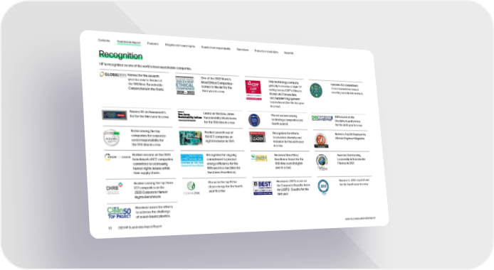 Contents Sustainable Impact Footprint Integrity and human rights Supply chain responsibility Operations Products and solutions Appendix Recognition HP is recognized as one of the world’s most sustainable companies. Named for the seventh One of the 2022 World’s Only technology company Honored for commitment year in a row to this list of Most Ethical Companies— globally to receive a triple “A” to and momentum toward the 100 Most Sustainable named to this list for the rating across CDP’s Climate, creating sustainable markets Corporations in the World third year in a row Water, and Forests lists and Supplier Engagement Leaderboard (for the 3rd year in a row) Named #1 on Newsweek’s Listed on the Dow Jones Placed second among 100% score on the list for the third year in a row Sustainability World Index technology companies and Disability Equality Index for the 10th time in a row fourth overall for the sixth year in a row Rated among the top Ranked seventh out of Recognized for efforts Named a Top 50 Employer by companies for corporate 150 ICT companies on to advance diversity and Woman Engineer Magazine social responsibility for digital inclusion in 2021 inclusion for the sixth year the 12th time in a row in a row Ranked second on the 2020 Recognized for ongoing Received SmartWay Awarded Outstanding benchmark of ICT companies commitment to product Excellence Award for the Leadership in Sustainable committed to addressing energy efficiency for the 10th time overall (eighth Finance in 2021 human rights issues within fifth year in a row (third for year in a row) their supply chains Sustained Excellence) Ranked among the top three Placed in the top 10 for Received a 100% score on Named to JUST Capital’s list ICT companies on the clean energy for the fourth the Corporate Equality Index for the fourth year in a row 2020 Corporate Human year in a row for LGBTQ+ Equality for the Rights Benchmark 19th year Received award for efforts to address the challenge of ocean-bound plastics 10 2021 HP Sustainable Impact Report www.hp.com/sustainableimpact