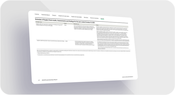 Contents Sustainable Impact Footprint Integrity and human rights Supply chain responsibility Operations Products and solutions Appendix Schedule of Supply Chain Audits, Assessments and Findings for the year ended October 31, 2021 Indicator name Scope Reported value Criteria Supplier audits and assessments completed, including percentage RBA9 Production suppliers provide materials and components for product manufacturing and also assemble HP Global In 2021, we completed 161 audits of production, nonproduction, Validated Assessment Program (VAP) audits and product transportation suppliers, and 24 other assessments products. Product transportation suppliers provide services for the shipping and delivery of HP products. of production suppliers. During the year, 88% of production Nonproduction suppliers provide goods and services that do not go into the production of HP products (such supplier audits were third-party certified RBA VAP audits. as staffing, telecommunications, and travel). Audits of production suppliers, product transportation suppliers, suppliers supporting HP manufacturing, and HP manufacturing sites follow the RBA Code of Conduct Audit Protocol 6.0. HP also participates in the RBA VAP, which uses independent external auditors to audit suppliers’ social and environmental responsibility performance against HP Supplier Code of Conduct requirements. The number of audits reported includes those that begin during the reporting year and for which the audit report is received by February of the subsequent year (e.g., received by February 2022 for reports conducted during FY21). Audit reports received after this date are included in the following year’s reported value. Other assessments include health and safety assessments, onboarding assessments, vulnerable worker group (student and foreign worker) assessments, KPI validation assessments, and priority screening assessments. Supplier audit finding rate for major nonconformances and priority findings Global 80 initial audits and full re-audits of production suppliers Immediate priority findings are the most serious type of supplier nonconformance and require immediate conducted in 2021 identified 14 immediate priority findings, action. These would include any priority nonconformances (as defined by the RBA VAP) identified related to equivalent to 0.18 per audit on average, and 528 other the following topics: child labor, forced labor, severe forms of discrimination, health and safety issues posing 10 nonconformances, equivalent to 6.6 per audit on average. immediate danger to life or risk of serious injury, perceived violation of environmental laws posing serious and immediate harm to the community, and falsified pay slips. Other nonconformances include all other priority nonconformances and all major nonconformances as defined by the RBA VAP. Note: Non-financial information is subject to measurement uncertainties resulting from limitations inherent in the nature and the methods used for determining such data. The selection of different but acceptable measurement techniques can result in materially different measurements. The precision of different measurement techniques may also vary. 9 Responsible Business Alliance 10 Other priority nonconformances and major nonconformances represent 3.6% and 96.4% of other nonconformances, respectively. 97 2021 HP Sustainable Impact Report www.hp.com/sustainableimpact