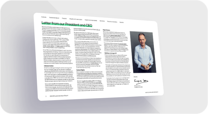 Contents Sustainable Impact Footprint Integrity and human rights Supply chain responsibility Operations Products and solutions Appendix Letter from our President and CEO We are confronting a set of global challenges that are personal systems and print product portfolio to 13%, as Digital Equity testing the very foundation on which our society is built. we aim for 30% by 2025. We are also committed to helping break down the From an ongoing pandemic to our accelerating climate We also are disrupting the US$10 billion fiber-based barriers that exclude many from participating in the crisis to persistent inequality, these challenges impact sustainable packaging market, with our 3D printing– digital economy. Nearly 3 billion people around the all of us. And the way we respond will help shape our enabled HP Molded Fiber Advanced Tooling Solution and world remain offline due to lack of access, affordability, future in profound and lasting ways. acquisition of Choose Packaging, the inventor of the only or usability. The COVID-19 pandemic exposed the depth Companies like ours have a critical role to play in known commercially available zero-plastic paper bottles. of this issue and even exacerbated it, as many schools helping solve these challenges. That’s why, in 2021, and businesses began operating remotely. we announced one of the most comprehensive We are partnering with leading conservation and That’s why, in 2021, we pledged to accelerate digital environmental and social impact agendas in our environmental organizations, including the World equity for 150 million people by the end of the decade— industry—with aggressive goals focused on climate Wildlife Fund, Conservation International, the Arbor Day a goal we aim to meet with the collaboration and action, human rights, and digital equity. And we have Foundation, and the Jane Goodall Institute, to invest support of key priority partners, like Girl Rising, NABU, been taking decisive action to meet them. in forest restoration and responsible management to MIT Solve, and Aspen Digital, through the Digital Equity counteract deforestation for non-HP paper used in HP Accelerator program launched in February 2022. In our 21st annual Sustainable Impact report, we share printers and print services. Since 2020, all HP brand the progress we are making. There are areas where we paper and paper-based packaging for home and office Building a stronger HP are leading but also opportunities for us to do more. printers and supplies, PCs, and displays have been From our earliest days as a company, HP has been Our teams are operating with the deep sense of derived from recycled or certified sources. a place where innovation drives extraordinary urgency needed to make continuous improvements, Finally, we are broadening our impact by engaging our contributions to humanity. Time and again, our people while forging partnerships to maximize our impact. hundreds of production suppliers and thousands of have had the vision to see entirely new possibilities for While no single company, sector, or even country can non-production suppliers in sustainability programs. the role we can play in the world—and the ingenuity to solve the enormous global challenges before us, we In early 2022, we expanded our Amplify Impact channel create technology that inspires ambitious progress. know we can create a better future by working together. partner program to empower more than 10,000 Climate Action partners in over 40 countries to advance their own That vision and ingenuity is reflected in the progress we sustainable impact journeys. are making against our Sustainable Impact goals today. Of all the challenges facing the world, none is greater And the impact on the world—and our business—is clear. than our climate crisis. And so, we set an ambitious Human Rights In fact, our Sustainable Impact initiatives helped the climate goal: By 2040, HP’s entire value chain—Scope 1, Even as we work to deepen our impact, we are focused company win more than US$3.5 billion in new sales in 2, and 3—will reach net-zero greenhouse gas emissions, on expanding the diversity of our workforce. Building a fiscal year 2021—a three-fold increase over the prior year. with a 50% reduction in absolute emissions by the end diverse and inclusive workforce is not only the right thing Simply put, when we innovate with purpose, we create of this decade. We’ve already achieved a 9% absolute to do—it also makes good business sense. Diverse teams the conditions for both business and society to thrive. reduction since 2019—but we know we must move faster. will always out-innovate and out-perform the market. Saludos, So, we’re rethinking our materials, as well as how to keep I am inspired by the progress we are making toward them in circular use, and how to reduce our footprint. We aim to double the number of Black and African becoming the world’s most sustainable and just American HP executives by 2025 and reach 50/50 technology company. And I hope our success spurs We’ve made significant progress in reducing gender equality in leadership by 2030. And while HP other businesses to join us in creating the future we plastic waste and using more recycled plastic. We is among the top technology companies for women in want to see—for our companies, our families, and have reduced single-use plastic packaging by 44% leadership positions—and nearly 45% of our U.S. hires our communities. Enrique Lores compared to 2018. And we have increased the use of in 2021 were racial/ethnic minorities—we are exploring President and CEO postconsumer recycled content plastic across our ways to improve inclusive representation at all levels. 3 2021 HP Sustainable Impact Report www.hp.com/sustainableimpact