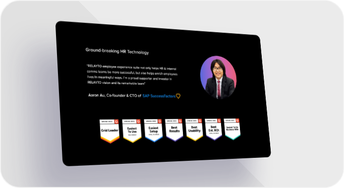 Ground-breaking HR Technology “RELAYTO employee experience suite not only helps HR & internal comms teams be more successful, but also helps enrich employees lives in meaningful ways. I’m a proud supporter and investor in RELAYTO vision and its remarkable team” Aaron Au, Co-founder & CTO of