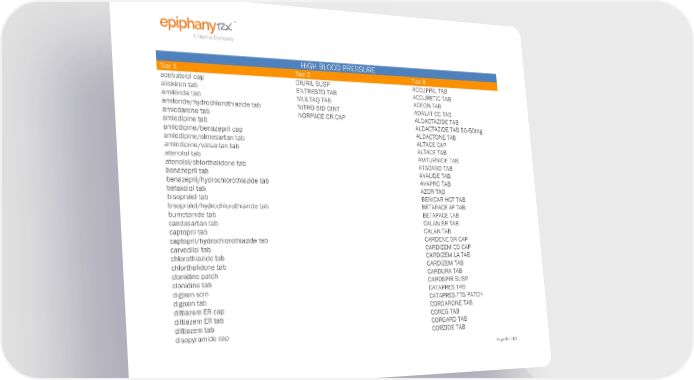 HIGH BLOOD PRESSURE Tier 1 Tier 2 Tier 3 acebutolol cap DIURIL SUSP ACCUPRIL TAB aliskiren tab ENTRESTO TAB ACCURETIC TAB amiloride tab MULTAQ TAB ACEON TAB amiloride/hydrochlorothiazide tab NITRO-BID OINT ADALAT CC TAB amiodarone tab NORPACE CR CAP ALDACTAZIDE TAB amlodipine tab ALDACTAZIDE TAB 50-50mg amlodipine/benazepril cap ALDACTONE TAB amlodipine/olmesartan tab ALTACE CAP amlodipine/valsartan tab ALTACE TAB atenolol tab AMTURNIDE TAB atenolol/chlorthalidone tab ATACAND TAB benazepril tab AVALIDE TAB benazepril/hydrochlorothiazide tab AVAPRO TAB betaxolol tab AZOR TAB bisoprolol tab BENICAR HCT TAB bisoprolol/hydrochlorothiazide tab BETAPACE AF TAB bumetanide tab BETAPACE TAB candesartan tab CALAN SR TAB captopril tab CALAN TAB captopril/hydrochlorothiazide tab CARDENE SR CAP carvedilol tab CARDIZEM CD CAP chlorothiazide tab CARDIZEM LA TAB chlorthalidone tab CARDIZEM TAB clonidine patch CARDURA TAB clonidine tab CAROSPIR SUSP digoxin soln CATAPRES TAB digoxin tab CATAPRES-TTS PATCH diltiazem ER cap CORDARONE TAB diltiazem ER tab COREG TAB diltiazem tab CORGARD TAB disopyramide cap CORZIDE TAB Page 6 of 10