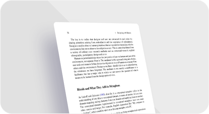 56 4 Designing with Blends The key is to realise that designer and user are connected to each other by sharing primitives arising from embodiment and the experience of embodiment. Designersneedtoobservehumanprimitivesthatarerevealedin interactingwiththe environment,butnottoobservethesubjectasa user.Thisis somewhatdistantfrom a variety of ordinary user research methods such as contextual research, applied ethnography,participatory design and so on. Human-experientialdesigntakestheperspectiveofuserashumanandpartofthe environment,not separate from it. The mediator in this approach integrates design, userandenvironment.Itthusdeniestheobjectivistviewofhumansasseparatefrom others and the environment. Design as mediator should help to us in remembering the wholeness we have forgotten. The mediator is not merely a middleman or a facilitator, but has a major role in which we can answer the question of what it meanstobehumanfromthedesignpointofview. BlendsandWhatTheyAddtoMetaphors As Lakoff and Johnson (1980) describe it a conceptual metaphor refers to the understanding of one idea or conceptual domain, in terms of another. It is a cross- domain mapping, taking elements from one domain and applying them to another. The conceptual domains hypothesized in conceptual metaphors have two main roles: source and target. For example, English expressions like “My computer is adesktop”, which could be taken as a desktop metaphor of a PC. •‘Desktop’ is the source domain from which we bring metaphorical expressions (Mycomputeris adesktop). •‘Mycomputer’isthetargetdomainthatwetrytounderstandandexperience(My computer is a desktop). “Mycomputeris a desktop” offers the primitive material for understanding new concepts. However, it does not directly indicate “a desktop interface of a PC.” The desktop metaphor of a PC is actually a newly emergent space – a blend. According to Imaz and Benyon (2006), “if the metaphor is a cross-domain mapping, taking elements from one domain and applying them to another, then blending is an operation that is applied to two input spaces, and which results in a new, blended space” (p. 43). Blending is the ability to take two mental spaces, and connect them in certain ways such that a blended mental space emerges, and this is the ability that gives rise to the possibility of art, science, and language (Fauconnier and Turner 2002). In the terminology of blending theory, the concept of mental space refers to partial cognitive structures that emerge when we think and talk (Fauconnier 1997). According to Fauconnier (1997), there is a process of mental synthesis where previous experiences, cultural contexts and historical events are brought together to act in the form of frames or schemata, in between language and the real world. Mentalspaces are set up and built on from many sources. ‘Connectors’ link mental
