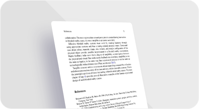 References 71 collaboration.Themoreappropriatesensualperceptioniscreatedduringinteraction in blended reality space, the more tangible co-presence users feel. Effective blended reality systems must work by creating harmony through using appropriate contexts and thus creating optimal presence states. Contextual cues about colour, material, shape, size, texture, and weight configuration of the physical object provide possible improvement in a blended reality environment. Haptic feedback helps users feel a degree of tangibility, a convergence between the physical and virtual. But while haptic feedback can contribute, tangibility is not the same as haptics, in the same way that experienced presence is not the same as technologically-inducedimmersion (Waterworth et al. 2015). Tangible presence and co-presence are about supporting a natural flow of action andalmostunconscioussenseofthehereandnow,withinshareablecontexts.Thisis the potential experience of those interacting within blended reality spaces. The next chapter (Chap. 6) provides several illustrative examples of the human-experiential design of such blended reality spaces. References Benjamin LT, Hopkins JR, Nation JR (1994) Psychology, 3rd edn. Macmillan College Publishing Company, New York Benyon D, Turner P, Turner S (2004) Designing interactive systems: people, activities, context, technologies. Pearson Education, Maidenhead DeyAK(2001)Understanding and using context. Personal Ubiquit Comput 5(1):4–7 Hall ET (1959) The silent language. Bantam Doubleday Dell Publishing Group, Garden City Hall ET (1969) The hidden dimension. Anchor, Doubleday, Garden City Hall ET (1976) Beyond culture. Anchor, Doubleday, Garden City Hara K (2009) White. Lars Muller Publishers, Baden Hoshi K, Waterworth JA (2008) Effective collaboration for healthcare by bridging the reality gap across media-physical spaces. Paper presented at the proceedings of the 1st international conference on PErvasive technologies related to assistive environments Hoshi K, Pesola U-M, Waterworth EL, Waterworth J (2009) Tools, perspectives and avatars in blended reality space. In Weiderhold BK, Riva G (eds) Annual international CyberTherapy and CyberPsychology 2009. Italy, June 2009. IOS Press, Amsterdam Hosoe I, Marinelli A, Sias R (1991) Play office: toward a new culture in the workplace. GC inc, Tokyo Ijsselsteijn WA, Riva G (2003) Being there: the experience of presence in mediated environments. In: Riva G, Davide F, IJsselsteijn WA (eds) Being there: concepts, effects and measurement of user present in synthetic environments. Ios Press, Amsterdam, pp 3–16, 344 Ishii H (2008) Tangible bits: beyond pixels. Paper presented at the The 2nd international conference on tangible and embedded interaction, Kingston, ON, Canada Krippendorff K (2005) The semantic turn: a new foundation for design. CRC press, Taylor & Francis Group, Boca Raton Lakoff G, Johnson M (1980) Metaphors we live by. The University of Chicago Press, Chicago Lombard M, Ditton T (1997) At the heart of it all: the concept of presence. J Comput Mediated- Commun.http://onlinelibrary.wiley.com/doi/10.1111/j.1083-6101.1997.tb00072.x/abstract Polanyi M (1966) The tacit dimension. The University of Chicago Press, Chicago