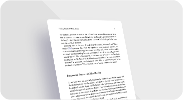 Feeling Present in Mixed Reality 7 for mediated presence to occur is that information is presented in a concrete form that an observer can make sense of intuitively (and literally, through sensations of the body), rather than having to think about. The result is the feeling of being in an external world, of presence. Referring back to the roots of the feeling of presence, Waterworth and Water- worth (2010) propose that when we experience strong mediated presence, we experiencethat the technologyhas become part of the self, and the mediated reality to which we are attending becomes an integrated part of the non-self, the world around the self. When this happens, in the same way as when we act directly in the physical world, there is no additional conscious effort of access to information presented in a medium, nor is there an extra effort of action to respond in the mediated environment.This is the ideal case of human-computerinteraction. FragmentedPresence in Mixed Reality As we have seen, and especially thanks to the proliferation of mobile devices and distributed systems, we often interact with both the physical world in which we are located and with the digital world of phone calls, text messages and chats, tweets, uploadedimagesandnewsfeeds.Someofthesewillevokepresenceinthemedium, to a greater or lesser extent dependingon the form in which theyare transmitted,but others will generate mental absence as we attend to them. In current mixed realities, a sense of presence in the physical world is often in competition with both presence andabsencein the virtual world of the digital. Cognitive load will tend to be inversely related to the level of presence experi- enced, since it is a reflection of the abstractness of a communicative medium. The locusofattention is anotherimportantfactor (Waterworthand Waterworth 2001).A concrete,perceptualpresentationofinformationwillinterferelesswithaothermore abstract task than an abstract description. While high cognitive loads will interfere more with other types of attention-demanding task than will low cognitive loads, twoperceptual(andthuspotentiallypresence-evoking)tasks may stronglyinterfere with each other even though each imposes a relatively low cognitive load. If the individual is already focusing his or her attention on the external world, as when driving, there will be a conflict between one perceptual task (driving) and another (say, looking at a navigation system display). In short, our sense of presence in current mixed realities is complex and fragmented. Another significant feature of digital communications is their frequent lack of symmetry. The different parties in an interaction will often be in different kinds of physical and/or digital situation, with very different characteristics. In two completely different situations the same message may be experienced in very different ways. At one end of a conversation, a person may be ready and able to be fully immersed in the communicative medium. At the other, the would-be communicatormayhaverestrictedattention,orbandwidth,or both,to devoteto the interaction. A relatively abstract form of communication may also be a matter of