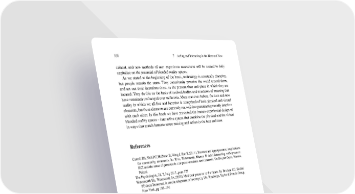 100 7 ActingandInteracting in the Here and Now critical, and new methods of user experience assessment will be needed to fully capitalise on the potential of blended reality spaces. As we stated at the beginning of the book, technology is constantly changing, but people remain the same. They consciously perceive the world around them, and act out their intentions there, in the present time and place in which they are located. They do this on the basis of evolved bodies and structures of meaning that have remained unchanged over millennia. More than ever before, the here and now reality in which we all live and function is comprised of both physical and virtual elements,buttheseelementsarecurrentlynotwellintegratedandgenerallyinterfere with each other. In this book we have presented the human-experiential design of blendedreality spaces – interactive spaces that combine the physical and the virtual in ways that match humans sense making and action in the here and now. References Carroll JM,ShihPC,HoffmanB,WangJ,HanK(2014).Presenceandhyperpresence: implications for community awareness. In: Riva, Waterworth, Murray D (eds) Interacting with presence: HCIandthesenseofpresence incomputer-mediated environments. DeGruyter Open, Warsaw, Poland ThePsychologist, 28, 7, July 2015, page 577 Waterworth EL, Waterworth JA (2010) Mediated presence in the future. In: Bracken CC, Skalski PD(eds)Immersedinmedia:telepresenceineveryday life.Routledge,Taylor&FrancisGroup, NewYork,pp183–196