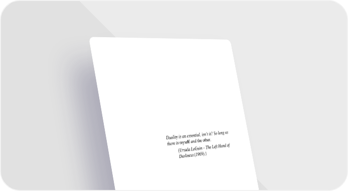 Duality is an essential, isn’t it? So long as there is myself and the other. (Ursula LeGuin – The Left Hand of Darkness (1969).)