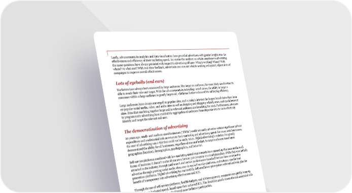 Lastly, advancements in analytics and data visualization have provided advertisers with greater insights into the effectiveness and efficiency of their marketing spend. No matter the medium on which a marketer is advertising, the same questions have always persisted with respect to advertising efficacy: What is working? Where? With whom? At what cost? With real-time feedback, advertisers can now see what is working and quickly adjust their ad campaigns to improve overall effectiveness. Lots of eyeballs (and ears) Marketers have always been enamored by large audiences. The larger an audience, the more likely an advertiser is able to reach their relevant target. With the advancements in technology noted above, the ability to target a consumer within a large audience is greatly improved, which has further enhanced the ad buying efficiency. Large audiences have always converged on popular sites, and in today’s internet the largest beneficiaries have been on popular social media, video, and audio sites as well as shopping and shopping-related, news, and special interest sites. Sites that can bring together large and/or relevant audiences are benefiting the most. Furthermore, advances in programmatic advertising have enabled the aggregation of audiences from disparate sites to more effectively identify and target the relevant end user. The democratization of advertising 20 years ago, small- and medium-sized businesses (“SMBs”) could not easily advertise without significant upfront expenditure and a substantial risk on return to their marketing and advertising spend. For many such businesses, the cost of advertising was a risk that could not be easily taken. Digital advertising’s evolution has greatly democratized the ability for all businesses, regardless of size and budget, to target audiences based upon geographies (location), demographics, psychographics, and behavior. Self-service platforms combined with low marketing spend requirements have opened up this mass media to all forms of business; it doesn’t matter if you are a fortune 500 company or a local pizza place. SMBs that were initially attracted to the industry through paid search and certain performance-based ad formats have continued to advertise through growing social media sites, easy-to-use self-service platforms, and industry-specific lead generation platforms. Digital advertising has successfully delivered lower price points with reduced risk, plus the benefit of transparency into advertising effectiveness and ROI. Through the use of self-service platforms, flexible budgets, and ROI transparency, companies can quickly ramp up or turn down budgeted spend, based upon their achieved ROI. This flexibility greatly lowers the risk associated with the advertising process and has facilitated more inclusive participation. The impact of the direct brand economy With the advent of the direct brand economy, an entire genre of companies that did not previously exist are requiring efficient advertisements that can be directed at a specific desired audience. With most of the purchases relating to direct brands being made over the internet, ad campaigns targeted at internet users make perfect sense. Small startups are able to fuel rapid growth by having transparency into the effectiveness of their advertising campaigns and can continue to reinvest in customer acquisition through digital advertising, as long as the ROI remains positive – so long as there is positive ROI, advertising spend increases, facilitating faster and more efficient scalability. This becomes a major driver of growth. PwC | IAB internet advertising revenue report 5