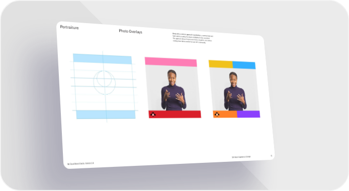 Portraiture Photo Overlays Along with a common approach to portraiture, a common look and feel to photo overlays has been established to be consistent. The approach allows for personal choice of palette, and distinct overlays have been created for each B.E. Community. Be Equal Brand Guide, Version 2.0 IBM Brand Experience & Design 41