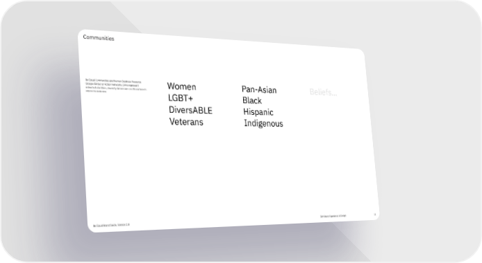 Communities Be Equal Communities are the new Business Resource Groups (BRGs) or Action Networks. CANs represent Women Pan-Asian Beliefs⦠individual identities, diversity dimensions or other interests related to inclusion. LGBT+ Black DiversABLE Hispanic Veterans Indigenous Be Equal Brand Guide, Version 2.0 IBM Brand Experience & Design 11