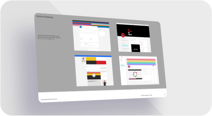 Online Presence Many assets have been pre-prepared for social presence and sharing, across a variety of platforms. These resources are available to all. Be Equal Brand Guide, Version 2.0 IBM Brand Experience & Design 43