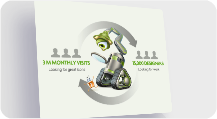 3 M MONTHLY VISITS 15,000 DESIGNERS Looking for great icons! Looking for work! Iconfinder Presentation Page 13 Page 15