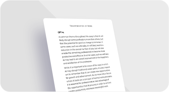 Transformation of Work GPT-4: A common theme throughout this essay is that AI will likely disrupt some professions more than others, but that the potential for positive change is immense. In some cases, such as with sales, AI will likely lead to a reduction in the overall number of jobs, but will also enable the remaining professionals to become more productive and effective. In other cases, such as with law, AI may lead to an overall improvement in the happiness and satisfaction of the profession. While it is important to be aware of the ways in which AI may disrupt traditional career paths, it is also import- ant to remember that AI can create new opportunities for growth and advancement. As we move into a future where AI tools are a core part of normal work processes, it is essential for professionals to take advantage of the opportunities that AI presents in order to achieve greater productivity and more meaningful work. 131