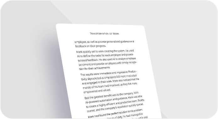 Transformation of Work employee, as well as provide personalized guidance and feedback on their progress. Mark quickly set to work creating the system. He used AI to define the tasks for each employee and provide tailored feedback. He also used AI to analyze employee sentiment and provide employees with timely recogni- tion for their achievements. The results were immediate and impressive. Produc- tivity skyrocketed as employees felt more motivated and engaged in their work. Mark also noticed that the morale of his team had improved, as they felt more empowered and valued. But the greatest benefit was to the company. With AI-powered automation and guidance, Mark was able to create a highly efficient and productive team. Profits soared, and the company’s reputation quickly spread. Mark had found the perfect solution to his problem. With AI-powered tours of duty, he had managed to create an engaged and motivated workforce, while also increasing the company’s output and profits. Love it! Now let’s take a closer look at how some specific professions that are often identified as being endangered by AI might fare in the future. Sales Daniel Pink once wrote a #1 New York Times bestseller titled To Sell Is Human: The Surprising Truth About Moving Others. It’s hard to picture a computer as a salesperson. How would an AI build rapport by pointing out that you went to the same school as it, or sharing funny stories about raising its kids? 121