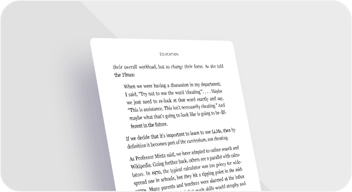 Education their overall workload, but to change their focus. As she told the Times: When we were having a discussion in my department, I said, “Try not to use the word ‘cheating’”. . . . Maybe we just need to re-look at that word exactly and say, “This is assistance. This isn’t necessarily cheating.” And maybe what that’s going to look like is going to be dif- ferent in the future. If we decide that it’s important to learn to use LLMs, then by definition it becomes part of the curriculum, not cheating. As Professor Mintz said, we have adapted to online search and Wikipedia. Going further back, others see a parallel with calcu- lators. In 1970, the typical calculator was too pricey for wide- spread use in schools, but they hit a tipping point in the mid- 1970s. Many parents and teachers were alarmed at the influx of new tools; they worried that math skills would atrophy and students would simply cheat. By 1980, however, the National Council of Teachers of Math- ematics recommended that “mathematics programs [should] take full advantage of calculators . . . at all grade levels.” Today, most math instructors consider calculators to be a critical part of math instruction, and many states mandate calculator use with certain tests. Reid: GPT-4, do you agree with this? Are large language models similar to electronic calculators and online search engines in terms of changing what skills are valu- able for students to learn? GPT-4: I partially agree with this. I think large language models are similar to electronic calculators and online search engines in some ways, but also different in others. 31