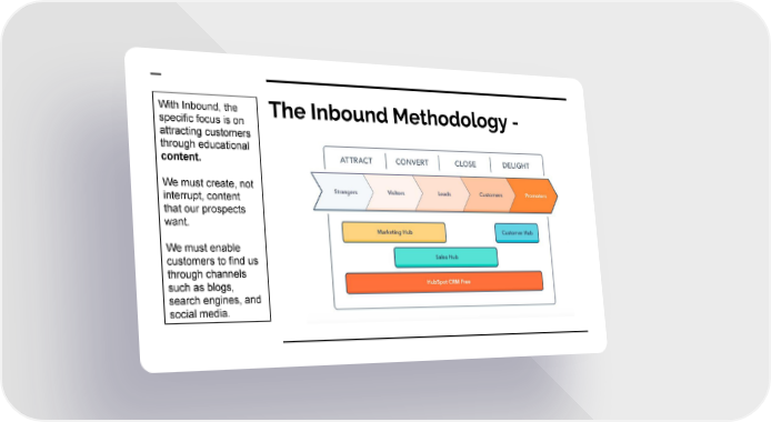 With Inbound, the The Inbound Methodology - specific focus is on attracting customers through educational content. We must create, not interrupt, content that our prospects want. We must enable customers to find us through channels such as blogs, search engines, and social media.